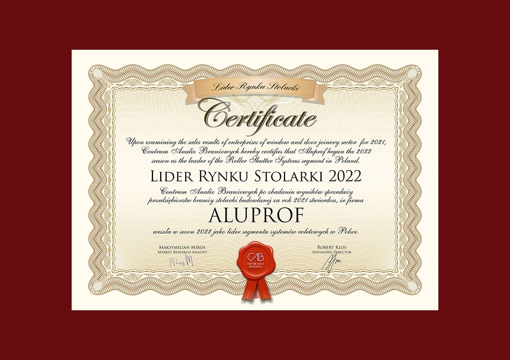 Trong nhiều năm xây dựng và phát triển, cửa nhôm Aluprof đã nhận được nhiều giải thưởng danh giá với uy tín được đánh giá cao như